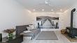 Az egyik lakrészben 1 hálószoba, konyha és fürdőszoba található. A másik lakásban 2 hálószoba, 2 fürdőszoba és egy konyha-étkező kapott helyet. A fűtést cirkókazán biztosítja, a nappaliban pedig kandalló található.